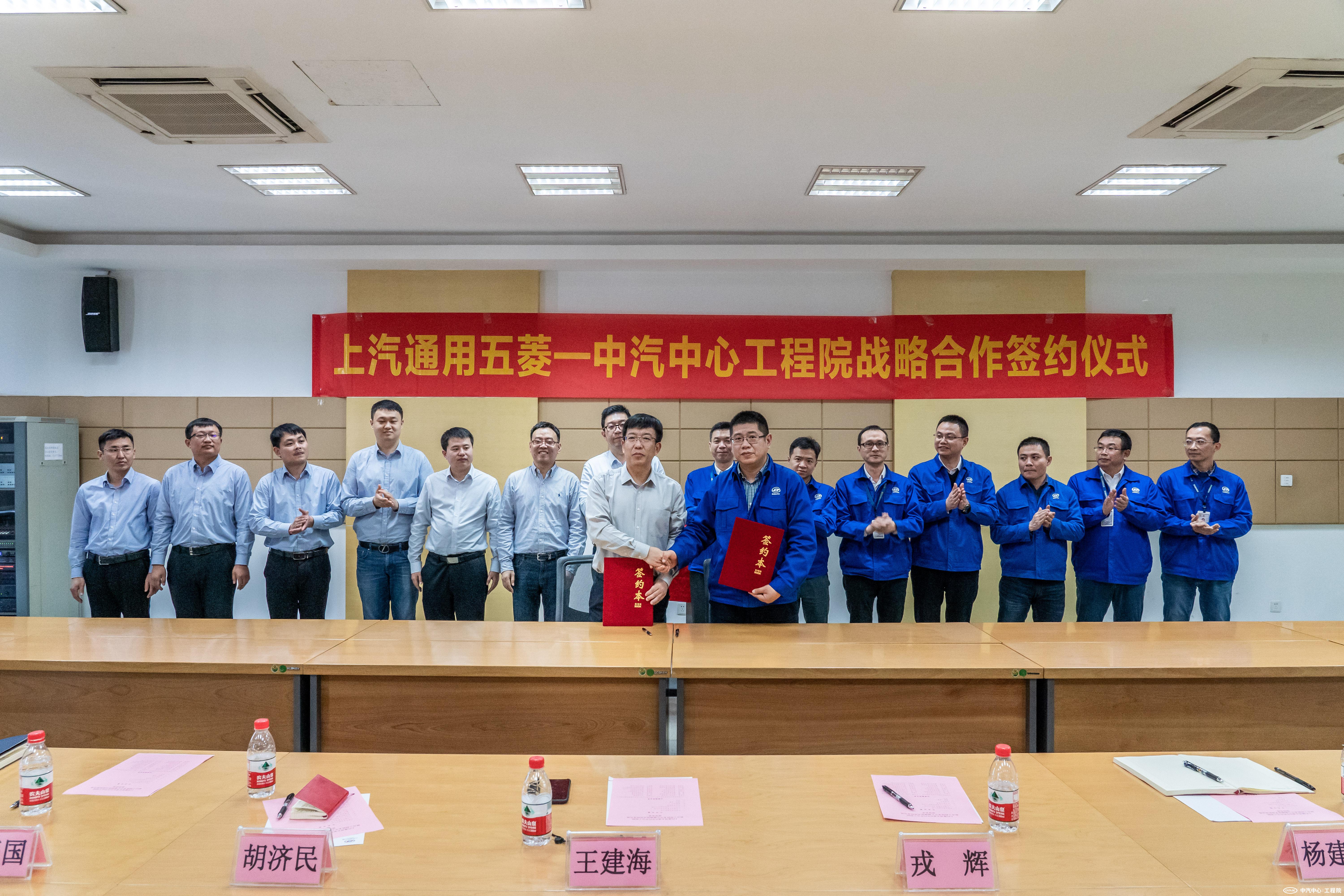 最后,在雙方團隊的共同見證下,王建海、呂俊成分別代表中汽中心工程院和上汽通用五菱簽署戰略合作意向書,共同揭牌成立“聯合工程技術中心”。