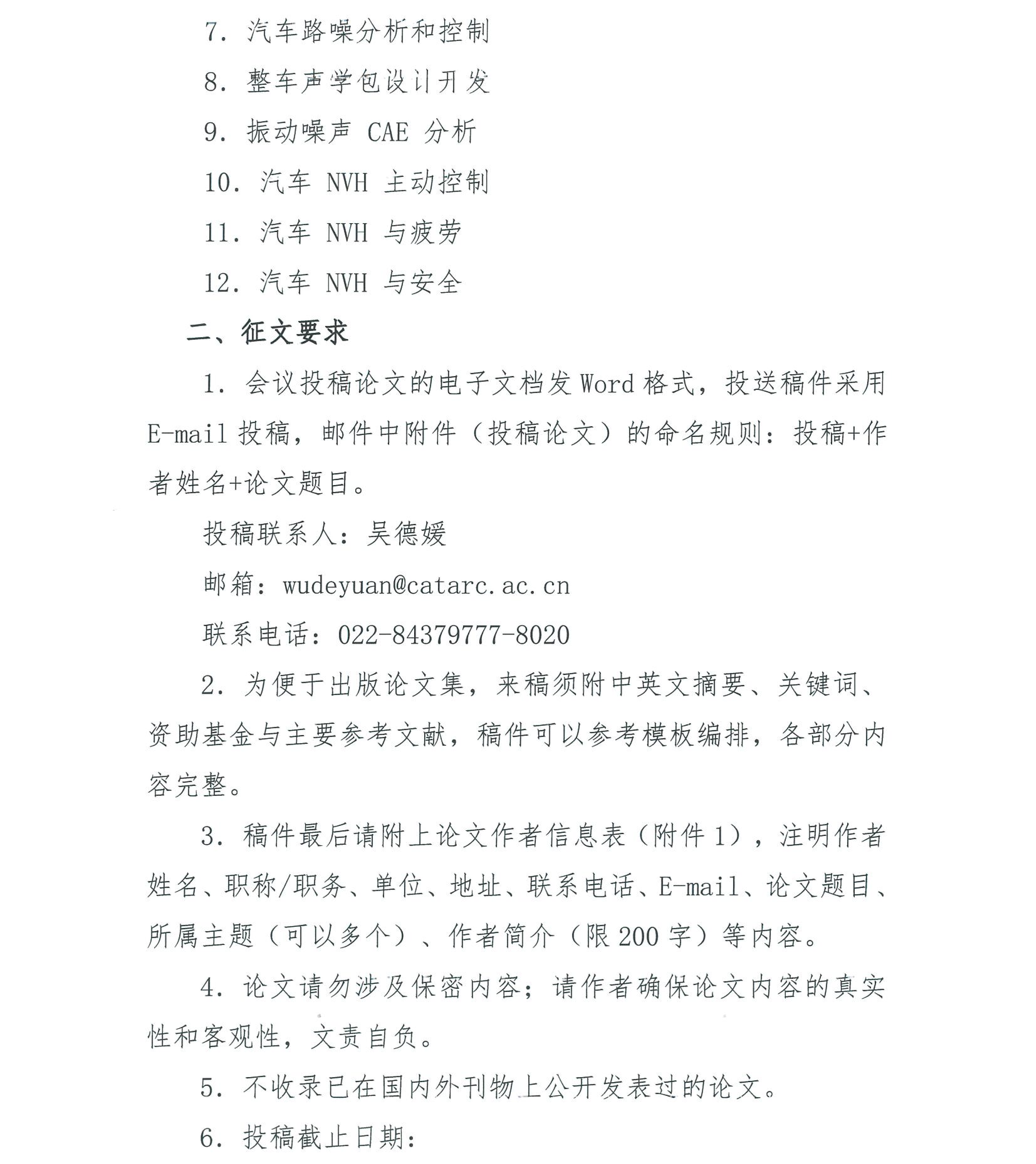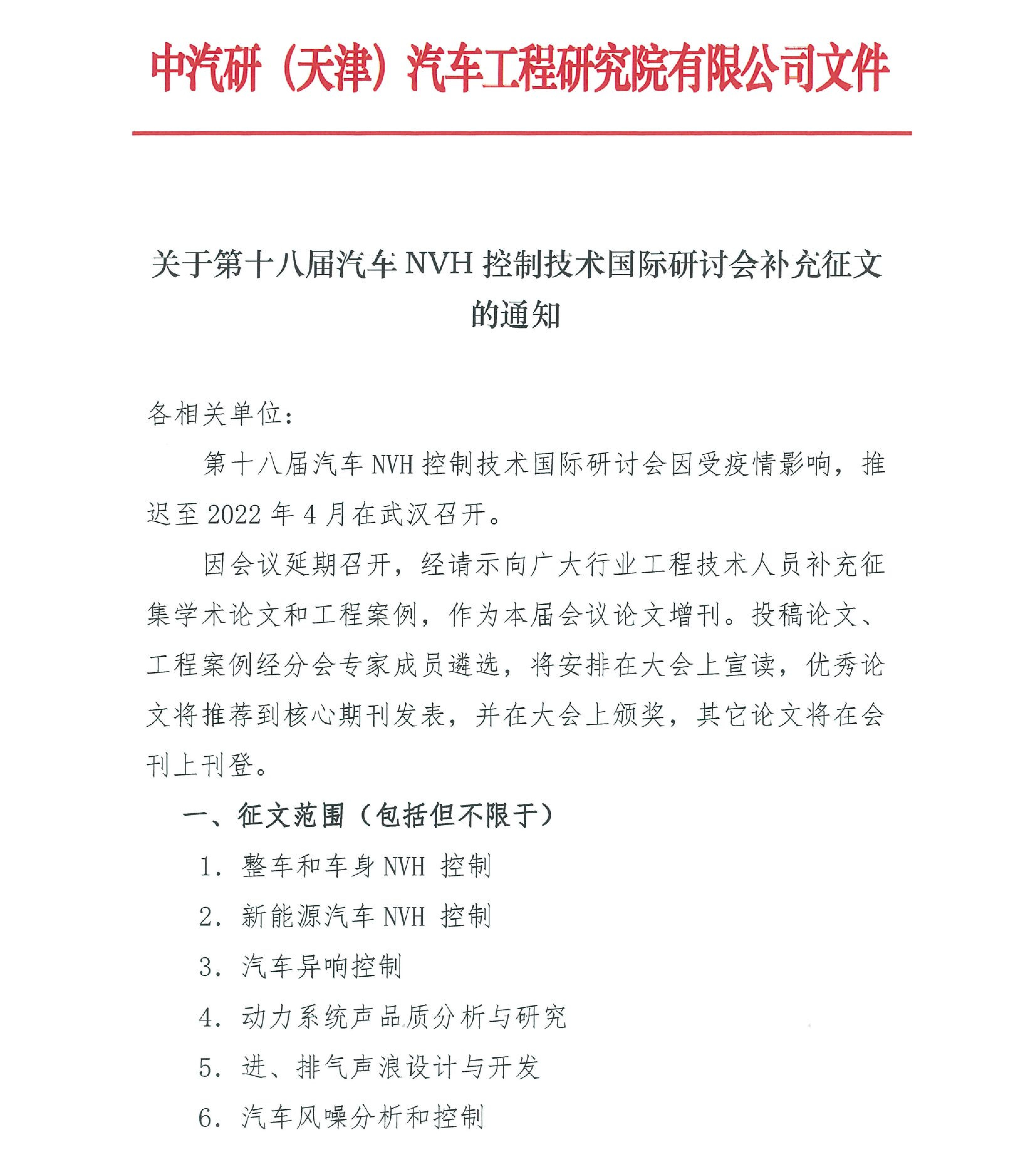 關(guān)于第十八屆汽車NVH控制技術(shù)國際研討會補充征文的通知