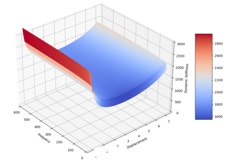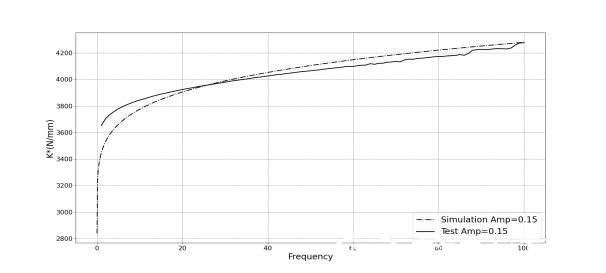 相較于Adams內置的襯套建模方法,該襯套模型采用的是半經驗模型辨識方法,使用了全新的摩擦力與阻尼力算法,可精準描述襯套靜剛度、摩擦滯環、動剛度、阻尼等特性,其靜態力學特性可達95%,動態力學特性可達90%。