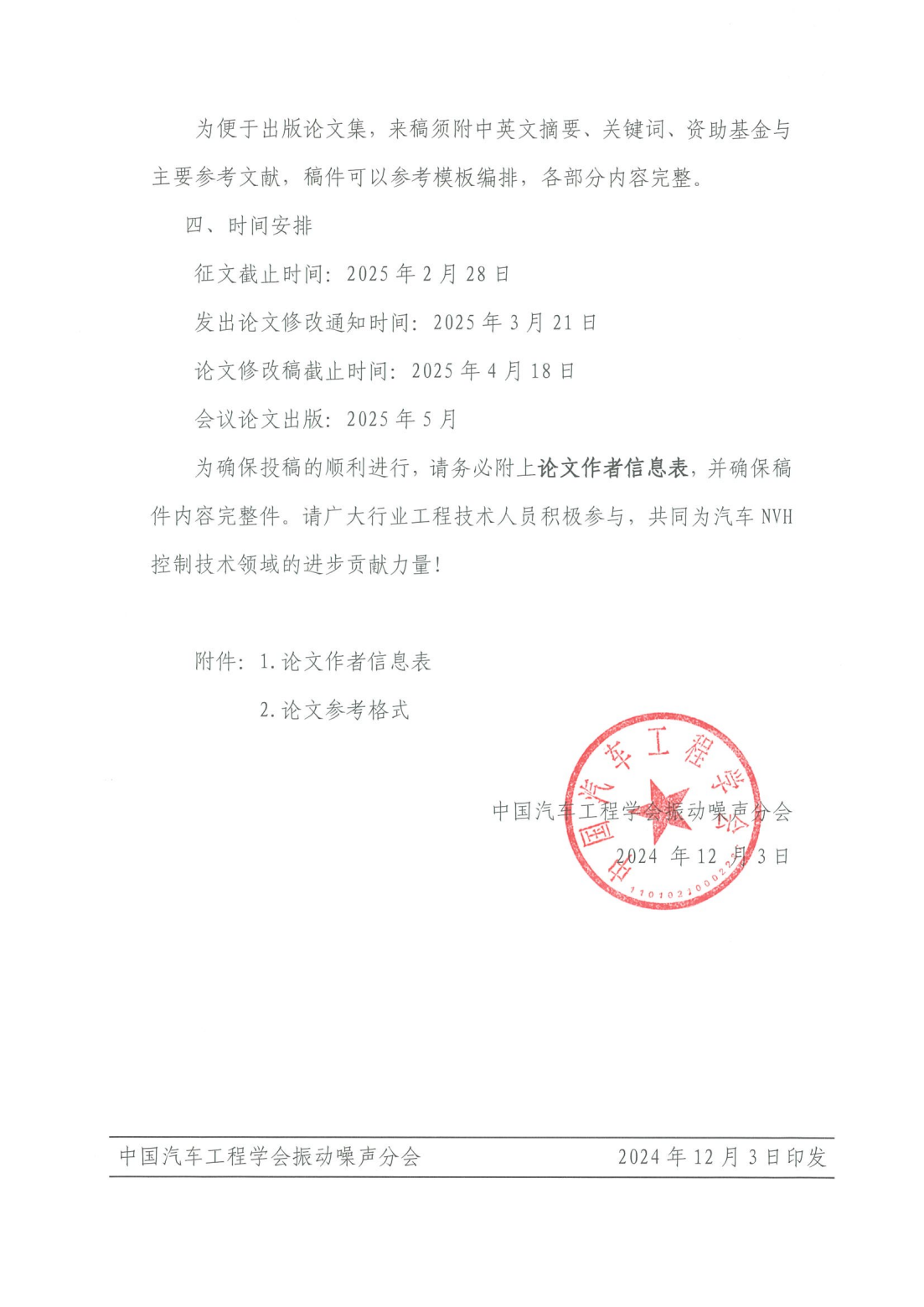 2025中國汽車工程學會振動噪聲分會第二十一屆汽車NVH控制技術研討會征文啟事