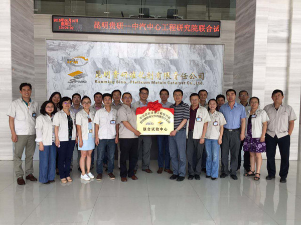 2015年6月10日,昆明貴研催化劑有限責(zé)任公司(以下簡稱“昆貴研公司”)與中國汽車技術(shù)研究中心汽車工程研究院(以下簡稱“中汽中心工程院”)成立“聯(lián)合試驗中心”揭牌儀式在昆貴研公司舉行。參加此次儀式領(lǐng)導(dǎo)有昆貴研公司盧軍董事長、魏軍副總經(jīng)理、賈庭渝副總經(jīng)理、賀小昆副總經(jīng)理和各部門負(fù)責(zé)人以及中汽中心工程院高繼東院長、劉雙喜主任、胡濟民主任。揭牌儀式由昆貴研公司馮豐副總經(jīng)理主持。