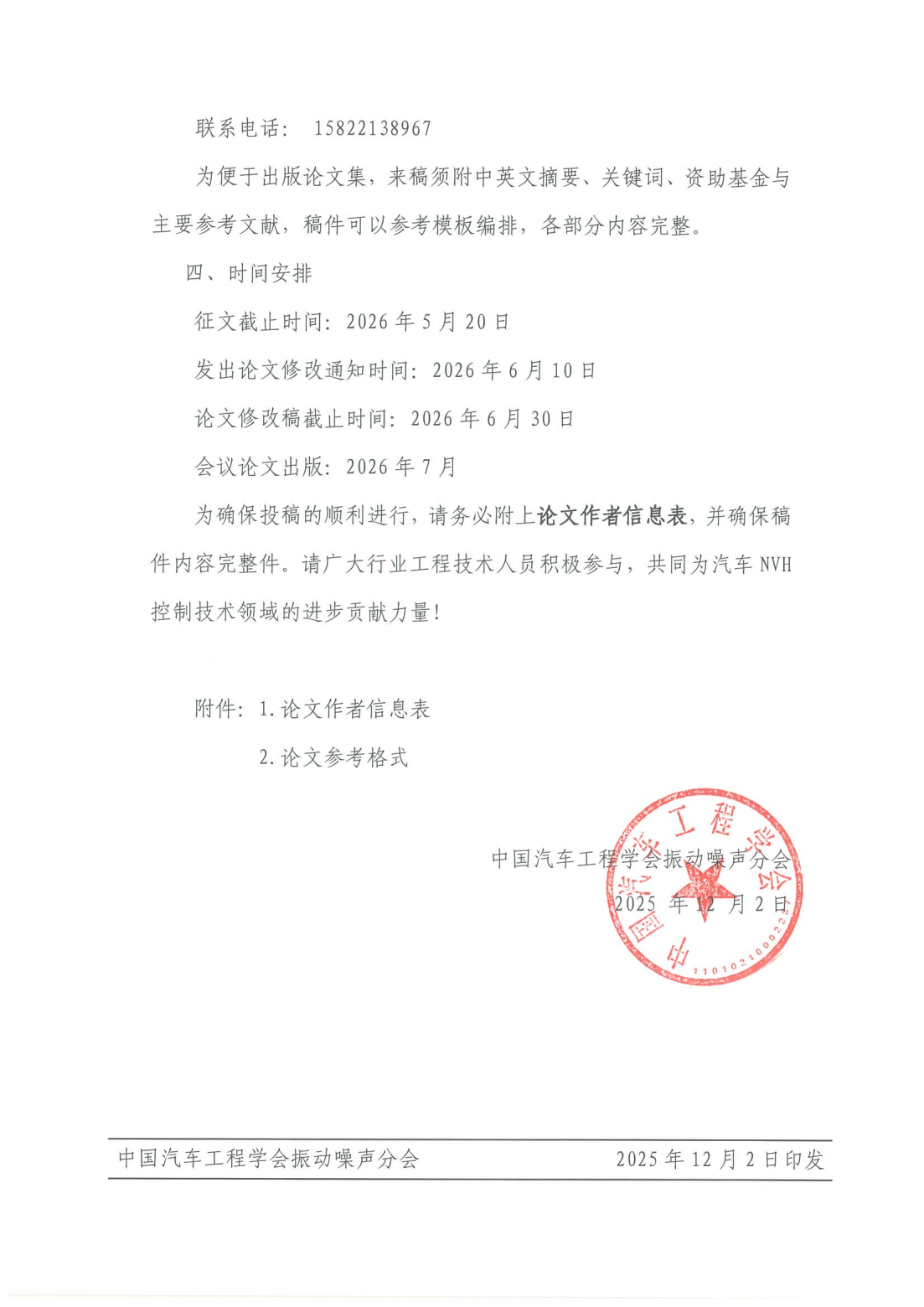 2026中國汽車工程學會振動噪聲分會 第二十二屆汽車NVH控制技術研討會征文啟事
