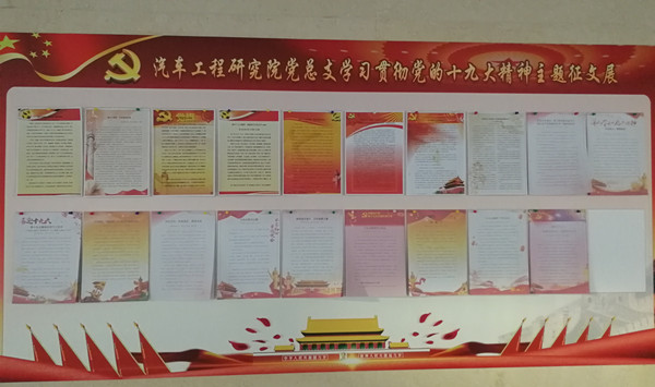2017年11月14日-12月15日,汽車工程研究院黨總支面向全院開展“以黨的十九大精神為指引,打造百年老店,將工程院建設(shè)成為引領(lǐng)汽車產(chǎn)業(yè)發(fā)展的世界一流研發(fā)機(jī)構(gòu)”為主題的征文活動(dòng),本次活動(dòng)共計(jì)收到投稿183篇,各黨支部通過(guò)內(nèi)部專家評(píng)審,共推選39篇優(yōu)秀文章進(jìn)行展示。