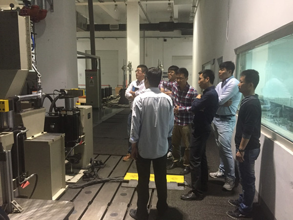 4月28日九點(diǎn),報名參加活動的黨員同志在工程院性能二環(huán)模實驗室集合。焦鵬飛為大家展開講解,首先就大家關(guān)心的業(yè)務(wù)內(nèi)容進(jìn)行介紹,讓大家了解到環(huán)模實驗室是以整車熱管理測試為主,兼具整車熱管理開發(fā),排放摸底試驗,高效空調(diào)測試,空調(diào)舒適性評價等多種業(yè)務(wù)的綜合性實驗室。之后牟連嵩同志帶領(lǐng)大家進(jìn)入環(huán)境艙內(nèi)部詳細(xì)參觀了各個子設(shè)備,并對其測試條件、測試原理逐一講解。并詳細(xì)回答了王長青等同志提出的問題。在大家對環(huán)模實驗室充分了解之后,馮博同志帶領(lǐng)大家到轉(zhuǎn)向系統(tǒng)實驗室參觀,給大家詳細(xì)介紹了轉(zhuǎn)向系統(tǒng)臺架的組成,模擬原理,模擬精度以及設(shè)備如何運(yùn)行,并對大家感興趣的業(yè)務(wù)內(nèi)容等進(jìn)行了介紹。