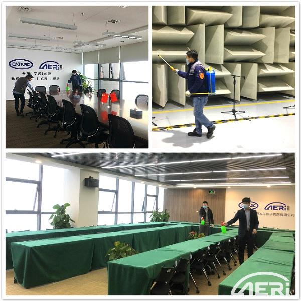 配備專人負責對辦公區、會議室和實驗室等公共區域進行全方位立體滅菌消毒,確保消毒到位、徹底。同時對復工員工進行日常體溫監測。