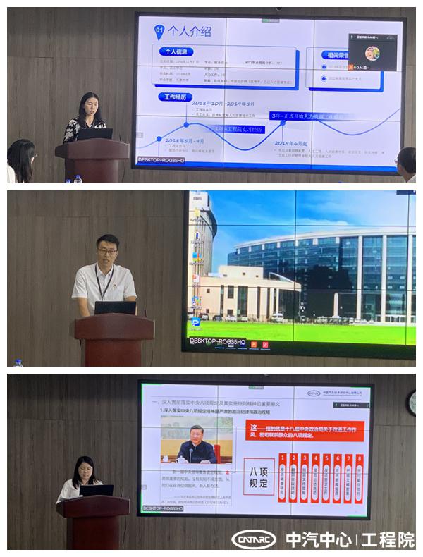 會上,馬卓、鄒楠兩位同志作為2022年度工程院優秀共產黨員代表進行發言,兩人分別立足自身崗位實際,分享了工作以來愛崗敬業、踔厲奮發的心路歷程。與會人員紛紛表示要向優秀榜樣看齊,振奮精神、扎實工作,爭做優秀共產黨員。隨后,汪黎明書記傳達中心全面從嚴治黨專題會議精神,紀檢委員劉慧慧同志對與會人員開展深入貫徹落實中央八項規定及其實施細則精神的專項培訓,增強支部黨員廉潔自律意識,筑牢思想“堤壩”防線。